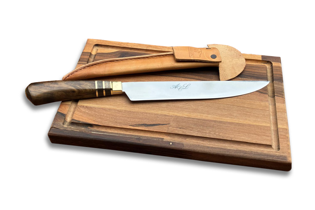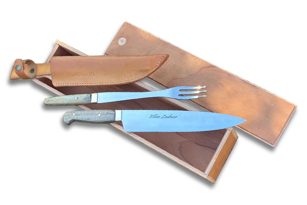CAJA DE CEDRO MAS JUEGO N 16 CON VAINA DE CUERO Y GRABADOS ( INICIALES-NOMBRES)