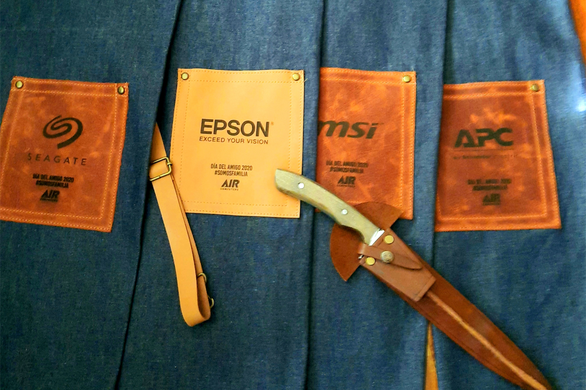delantal jdelantal jeans con bolsillo cuero con con grabado logo/s