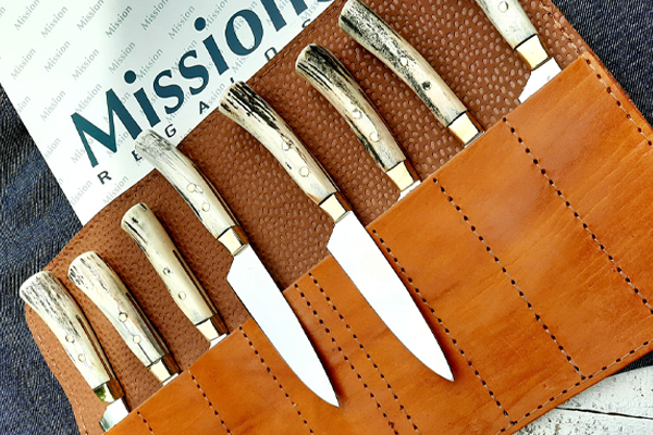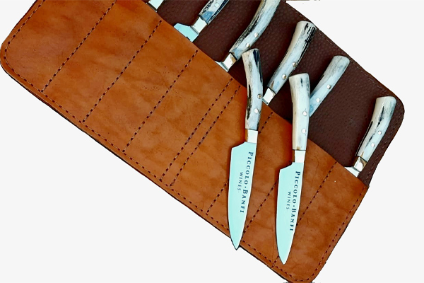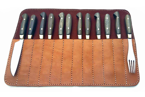 Estuche Cuero 8 Cuchillos Mango Embutido Asta