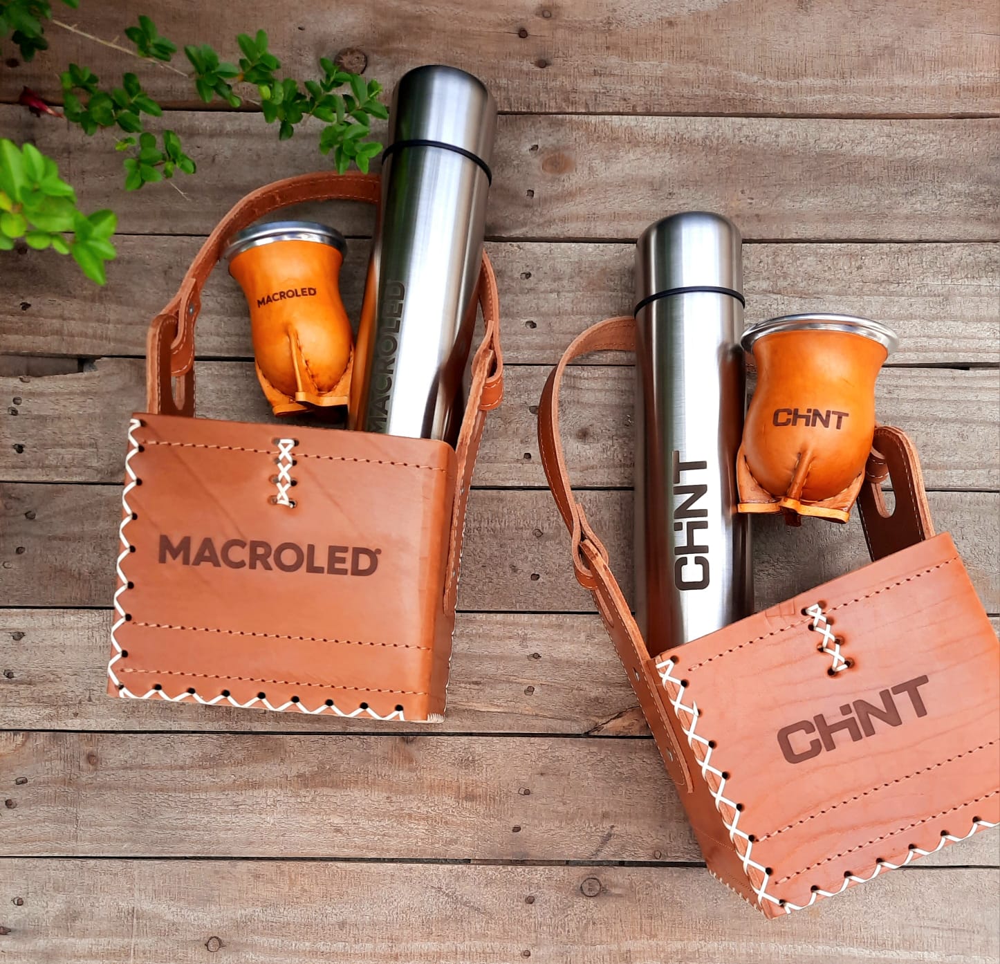 termo acero inoxidable grabado / mate vaqueta cuero grabado.