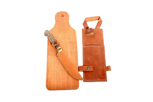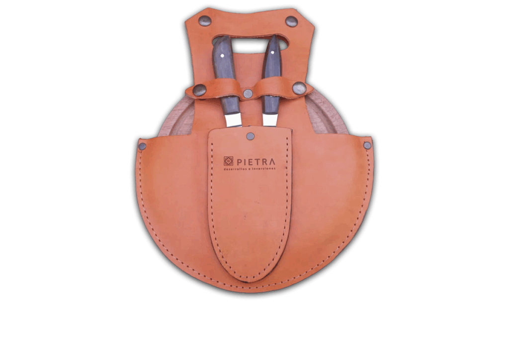 PORTAPLATO CON VAINA EN CUERO , PALTO DE 22 CM Y JUEGO P2 TRIPLE