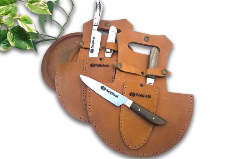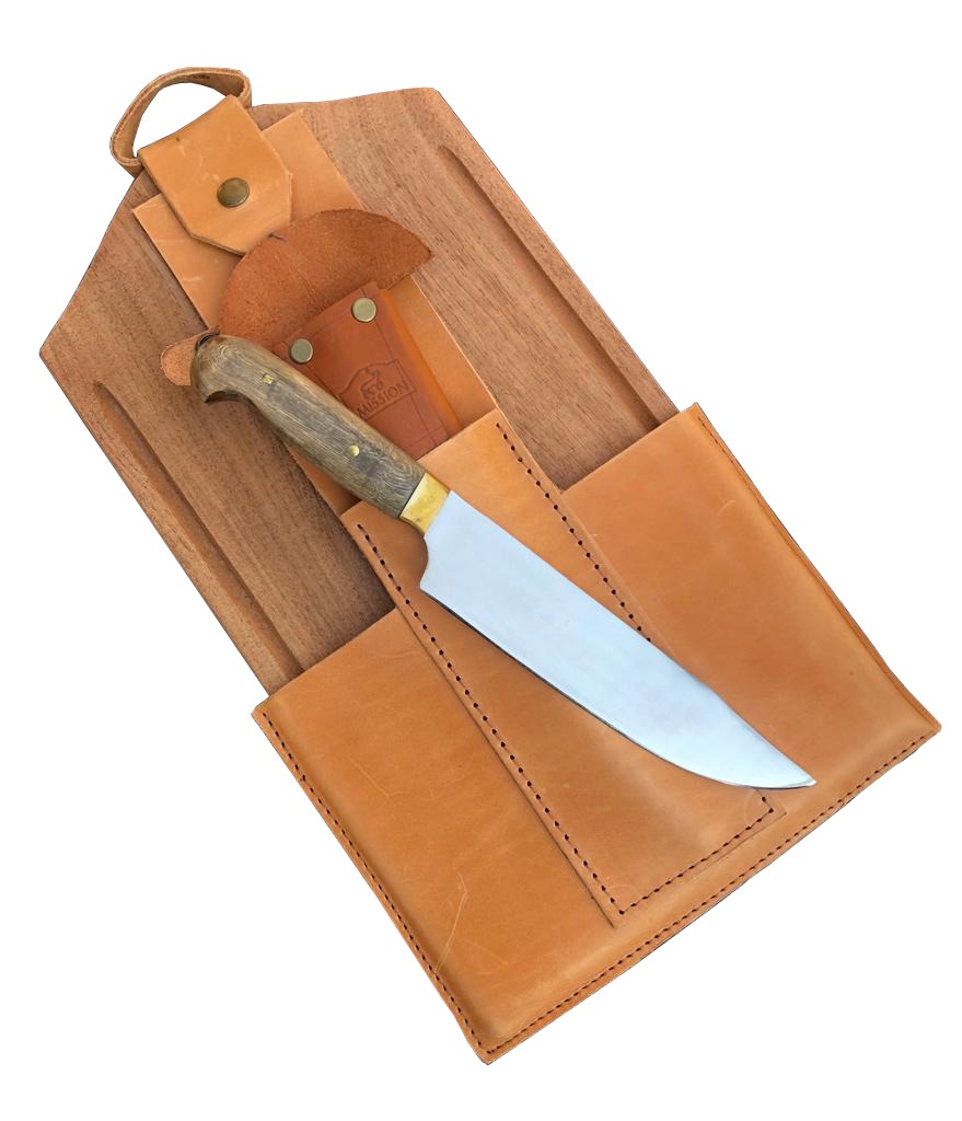 Tabla algarrobo de 40 cm x 22 cm mas estuche de cuero.