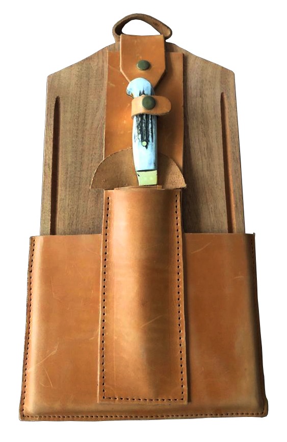 Tabla algarrobo de 40 cm x 22 cm mas estuche de cuero.